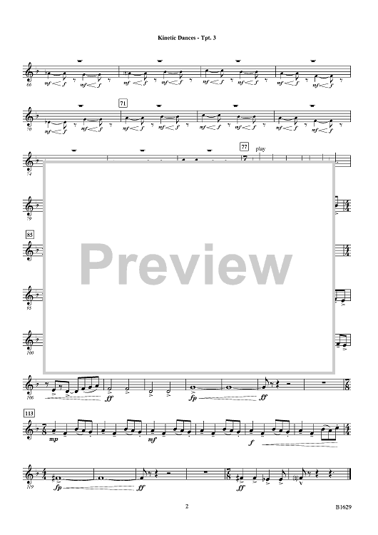 Digital Sheet Music for Kinetic Dances - Bb Trumpet 3 by Randall D. Standridge scored for Concert Band; id:454844