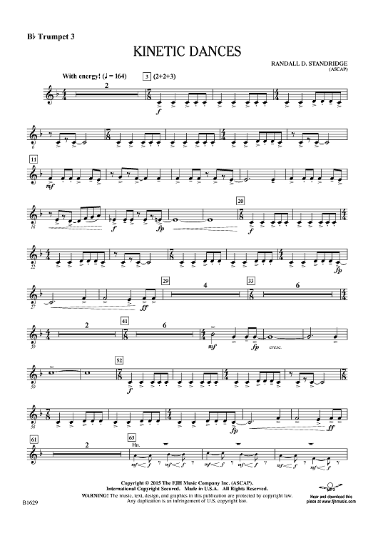 "Kinetic Dances - Bb Trumpet 3" Sheet Music by Randall D. Standridge