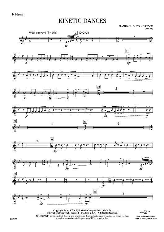 "Kinetic Dances - F Horn" Sheet Music by Randall D. Standridge