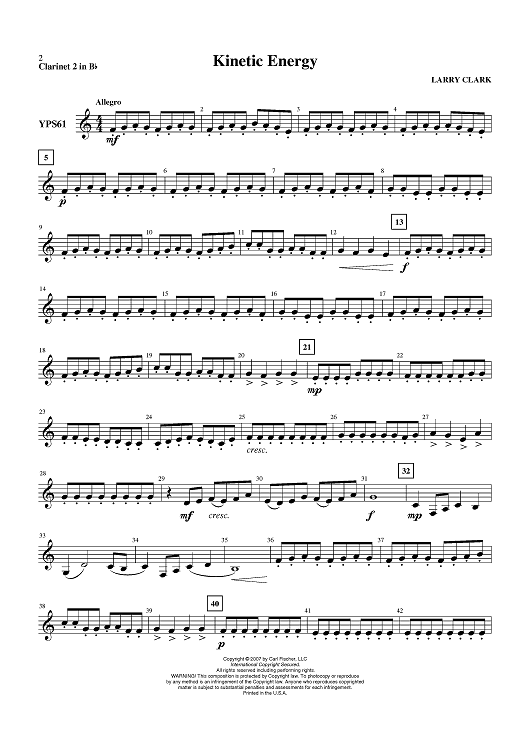 Digital Sheet Music for Kinetic Energy - Clarinet 2 in B-flat by Larry Clark scored for Concert Band; id:407716