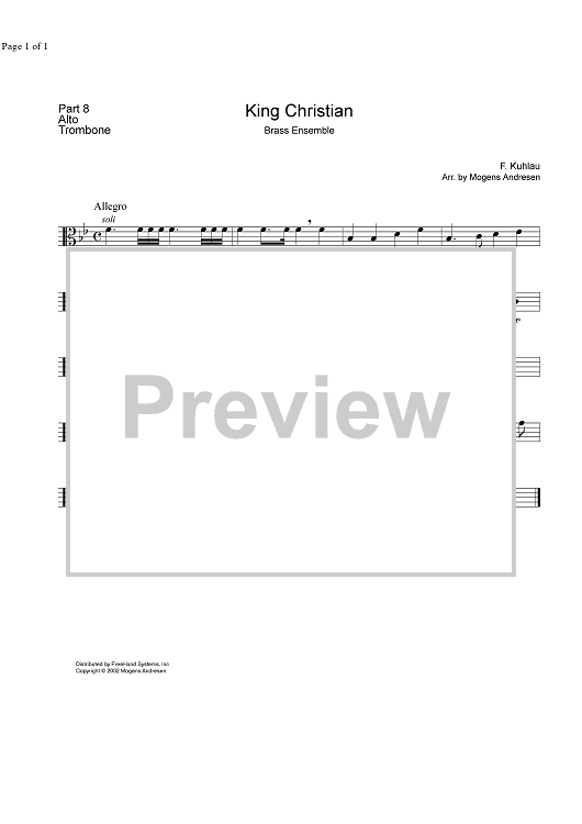 Digital Sheet Music for King Christian - Alto Trombone by Mogens Andresen, Friedrich Kuhlau scored for Brass Ensemble; id:333422