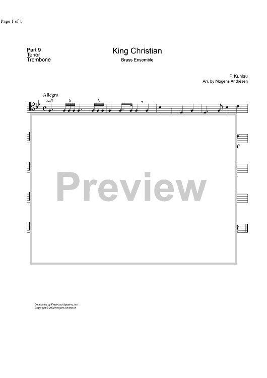 Digital Sheet Music for King Christian - Tenor Trombone by Mogens Andresen, Friedrich Kuhlau scored for Brass Ensemble; id:333423