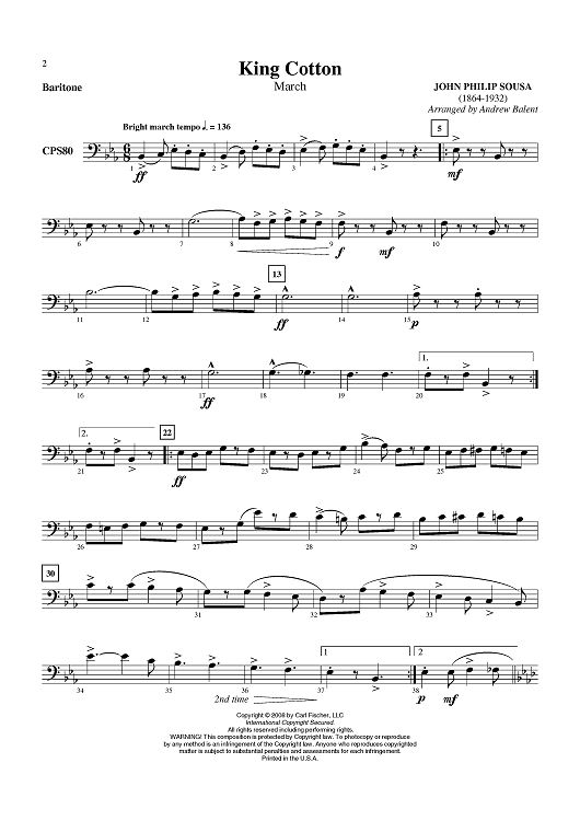 Digital Sheet Music for King Cotton - Baritone by John Philip Sousa, Andrew Balent scored for Concert Band; id:409709