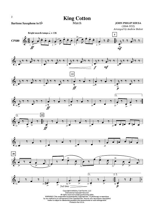 Digital Sheet Music for King Cotton - Baritone Sax by John Philip Sousa, Andrew Balent scored for Concert Band; id:409700