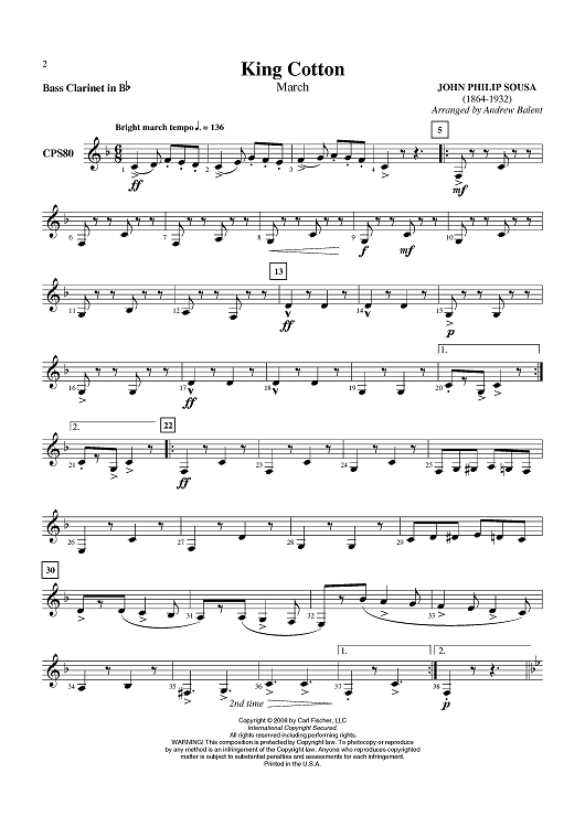 Digital Sheet Music for King Cotton - Bass Clarinet in B-flat by John Philip Sousa, Andrew Balent scored for Concert Band; id:409695