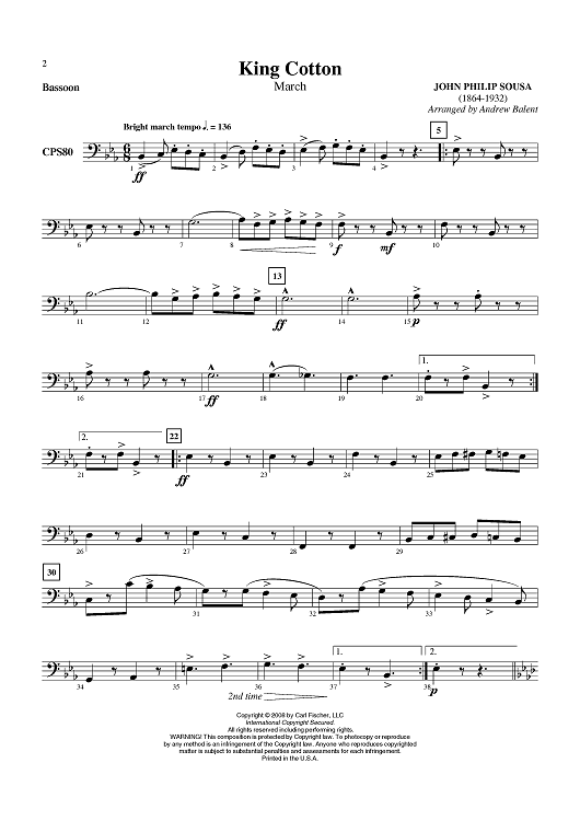 Digital Sheet Music for King Cotton - Bassoon by John Philip Sousa, Andrew Balent scored for Concert Band; id:409696