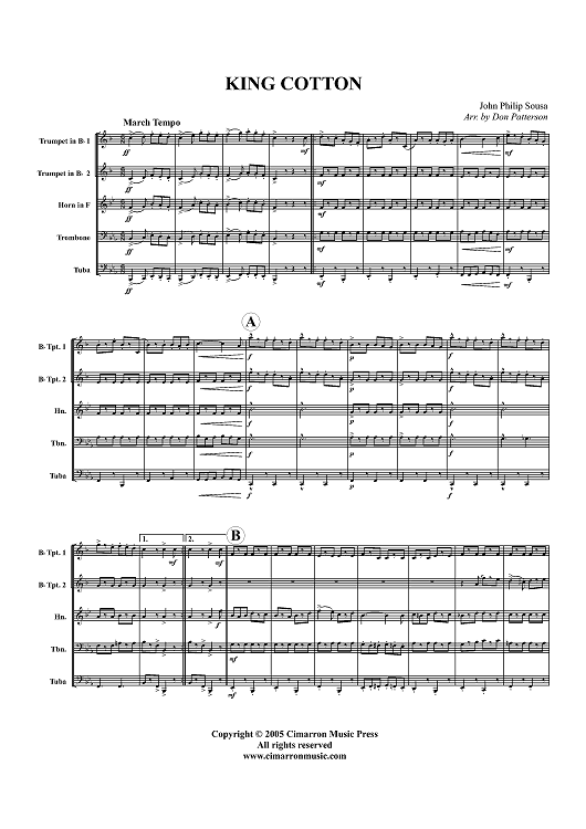 Digital Sheet Music for King Cotton - Score by John Philip Sousa, Don Patterson scored for Brass Quintet; id:320395