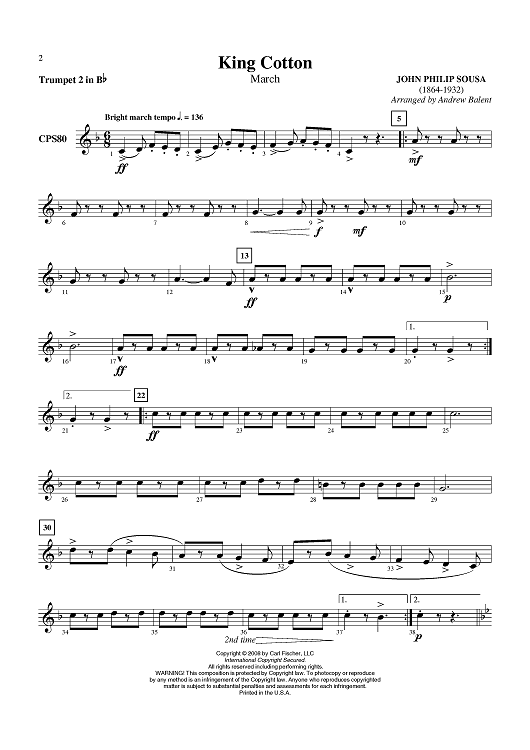 Digital Sheet Music for King Cotton - Trumpet 2 in B-flat by John Philip Sousa, Andrew Balent scored for Concert Band; id:409702