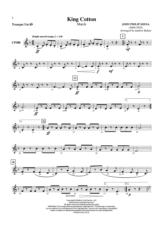 Digital Sheet Music for King Cotton - Trumpet 3 in B-flat by John Philip Sousa, Andrew Balent scored for Concert Band; id:409703
