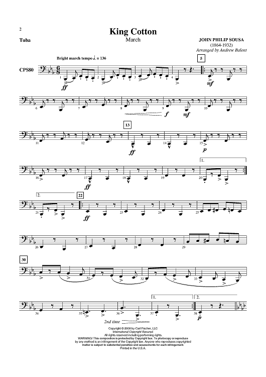Digital Sheet Music for King Cotton - Tuba by John Philip Sousa, Andrew Balent scored for Concert Band; id:409710