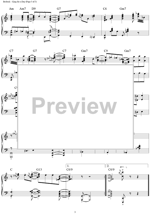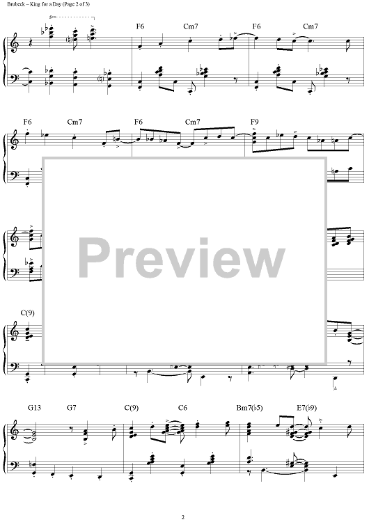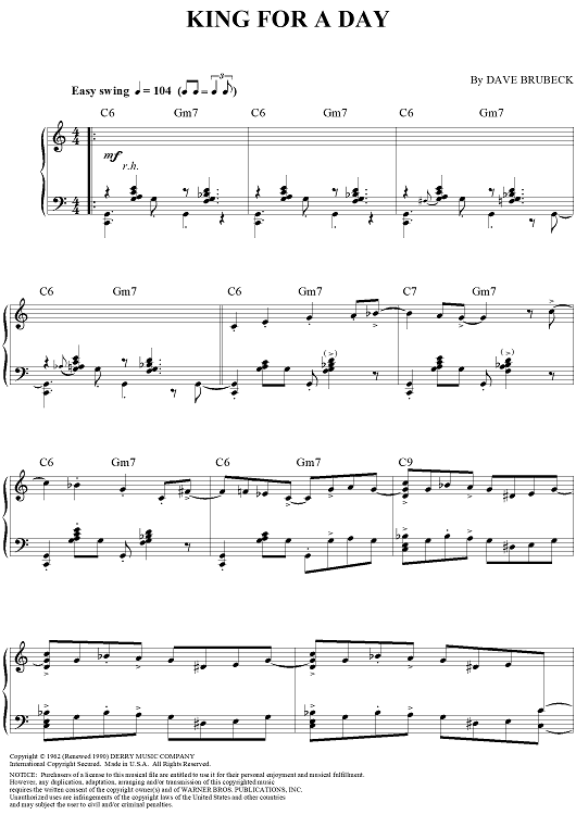 Digital Sheet Music for King for a Day by Dave Brubeck scored for Piano Solo; id:176675