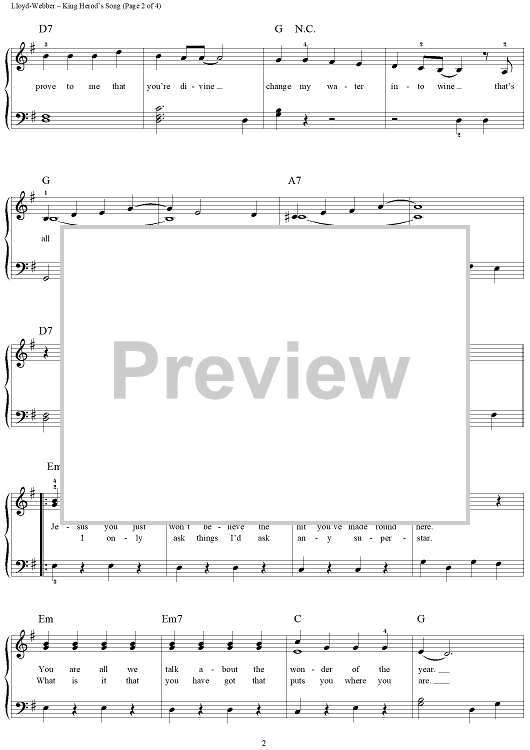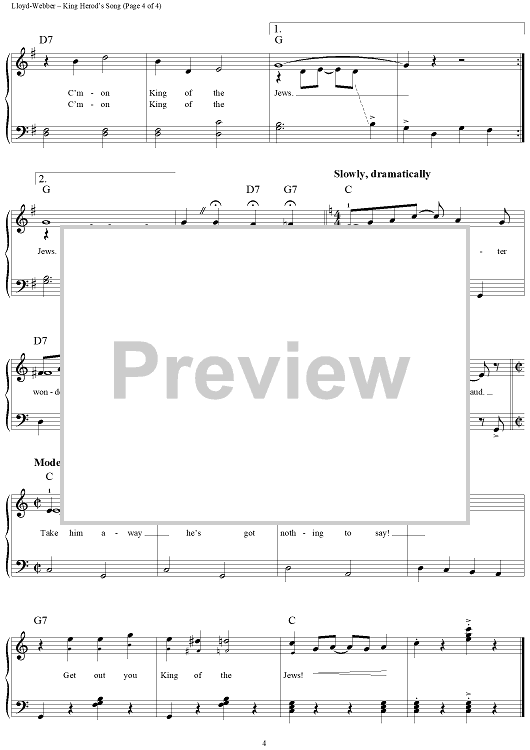 Digital Sheet Music for King Herod's Song by Andrew Lloyd Webber, Tim Rice, Denes Agay scored for Easy Piano/Vocal; id:296498