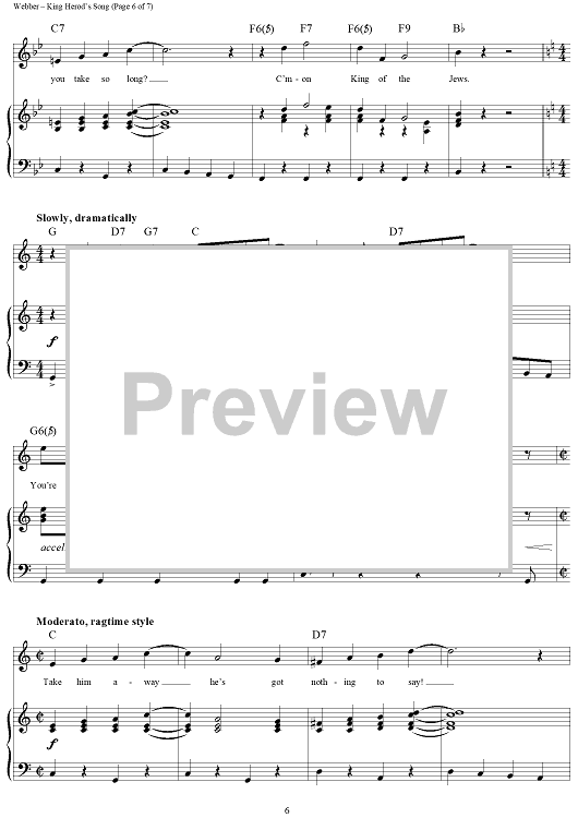 Digital Sheet Music for King Herod's Song by Andrew Lloyd Webber, Tim Rice scored for Piano/Vocal/Chords; id:296576