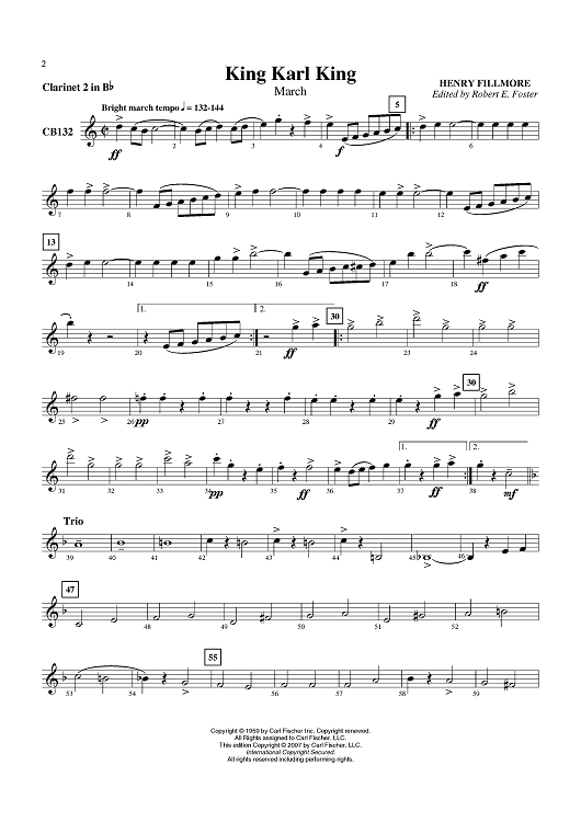 "King Karl King - Clarinet 2 in B-flat" Sheet Music by Henry Fillmore