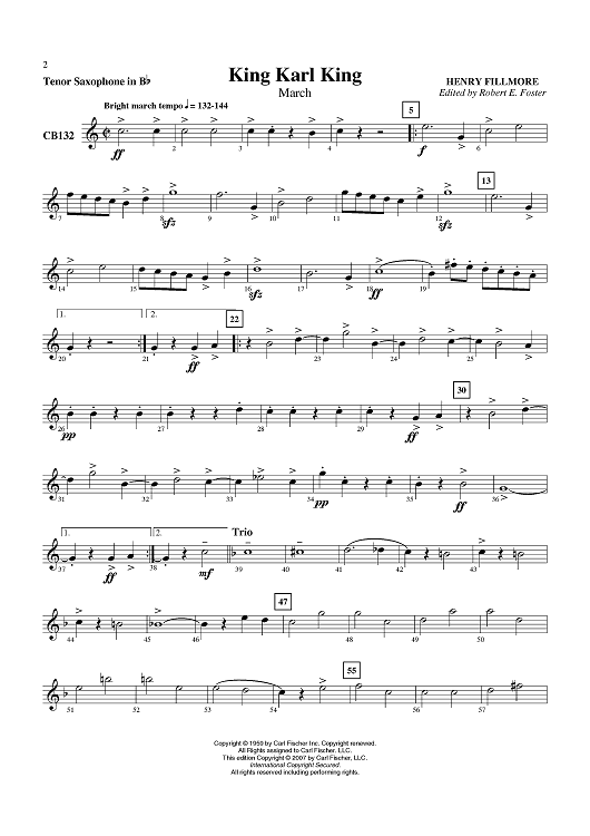 "King Karl King - Tenor Sax" Sheet Music by Henry Fillmore