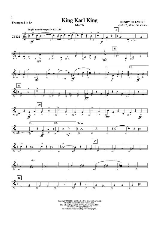 "King Karl King - Trumpet 2 in B-flat" Sheet Music by Henry Fillmore