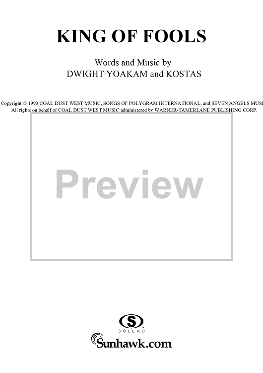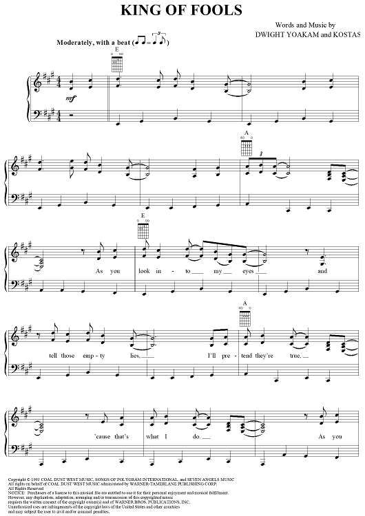 Digital Sheet Music for King of Fools by Kostas, Dwight Yoakam scored for Piano/Vocal/Chords; id:263015