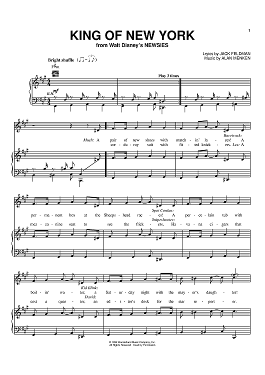 Digital Sheet Music for King Of New York by Alan Menken, Jack Feldman scored for Piano/Vocal/Chords; id:370829