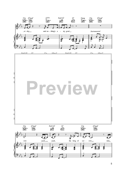 Digital Sheet Music for King Of Sorrow by Sade Adu, Paul Denman, Andrew Hale, Stuart Matthewman, Sade scored for Piano/Vocal/Chords; id:377334