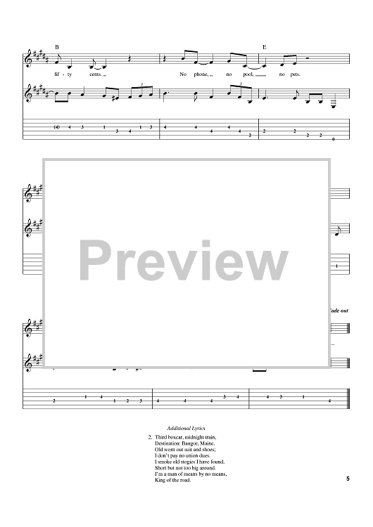 Digital Sheet Music for King Of The Road by Roger Miller scored for Guitar Tab; id:397588