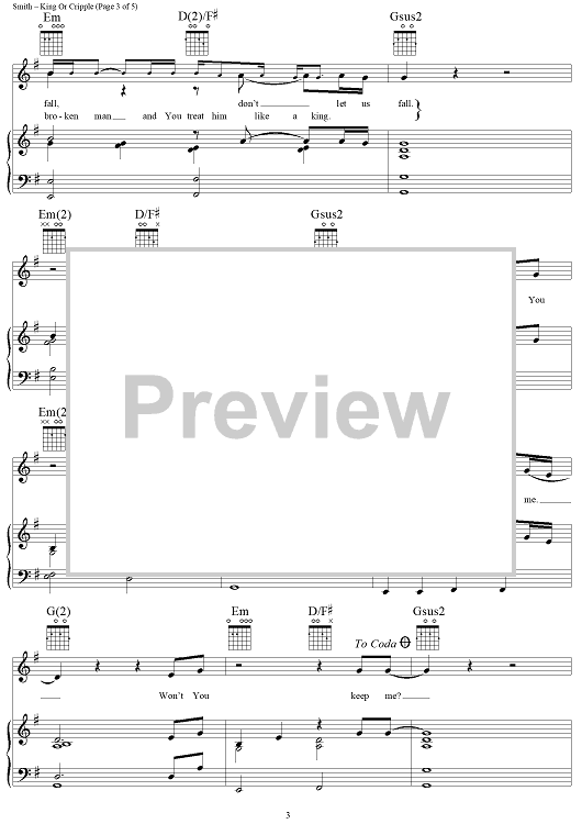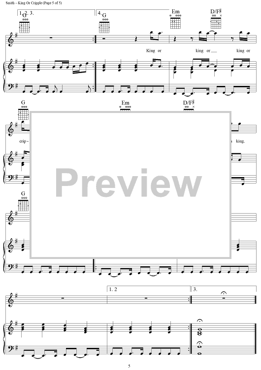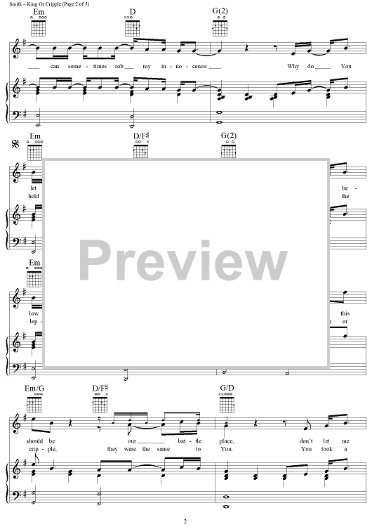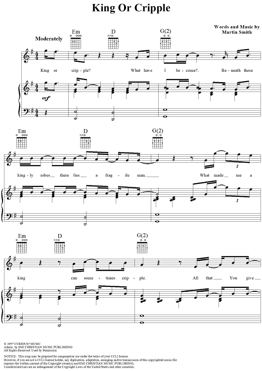 Digital Sheet Music for King or Cripple by Martin Smith, Delirious? scored for Piano/Vocal/Chords; id:124083