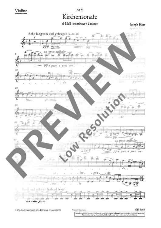 Digital Sheet Music for Kirchen-Sonate D Minor by Joseph Haas scored for Violin And Organ; id:472527