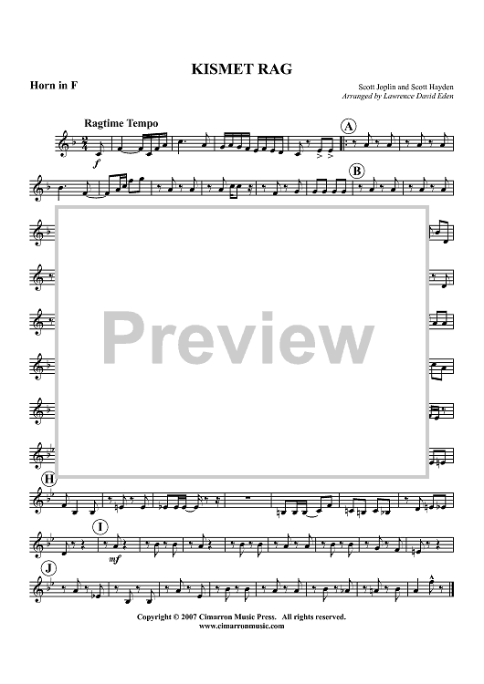 "Kismet Rag - Horn in F" Sheet Music by Scott Joplin