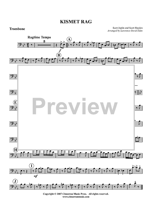 "Kismet Rag - Trombone" Sheet Music by Scott Joplin