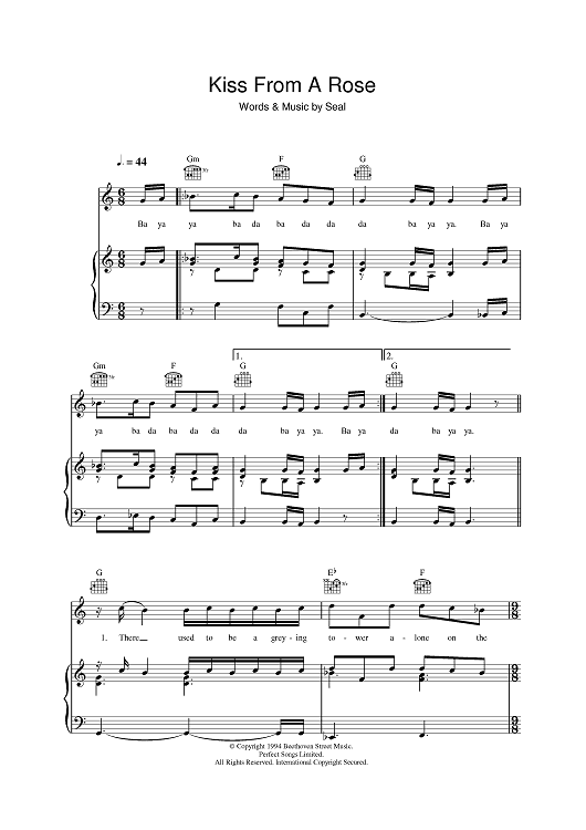 Digital Sheet Music for Kiss From A Rose by Seal scored for Piano/Vocal/Chords; id:393485