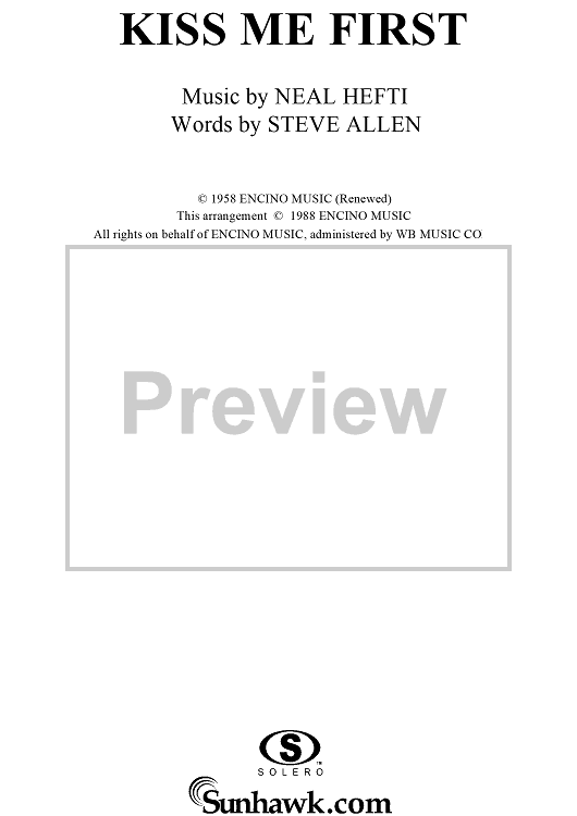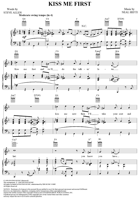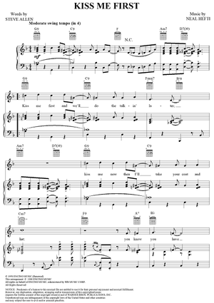 Digital Sheet Music for Kiss Me First by Steve Allen, Neal Hefti scored for Piano/Vocal/Chords; id:266653