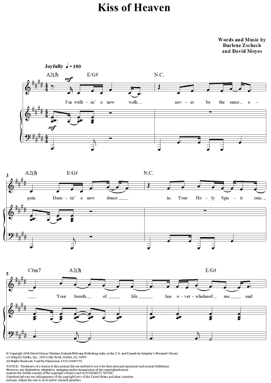 "Kiss of Heaven" Sheet Music by Darlene Zschech