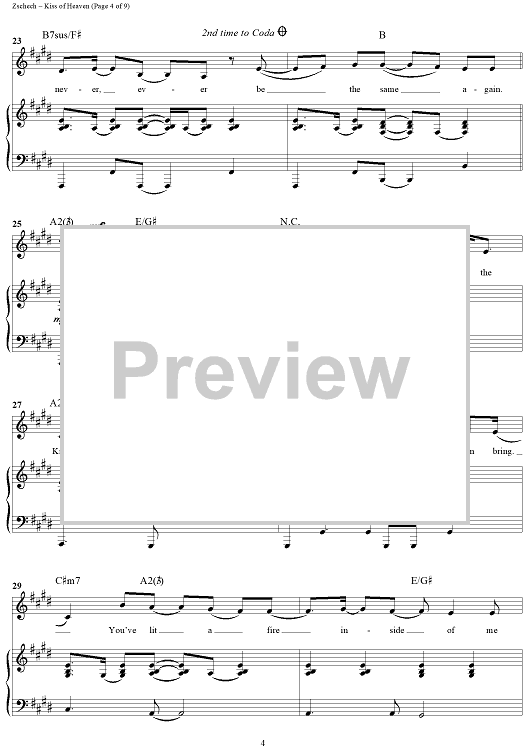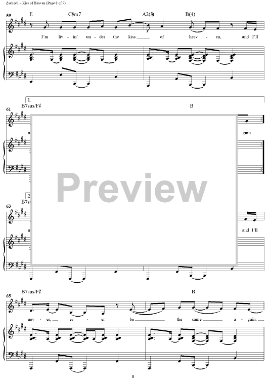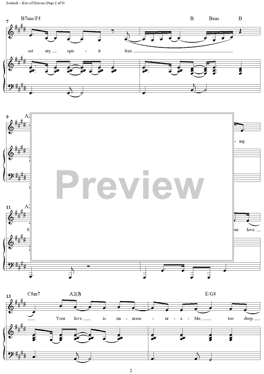 Digital Sheet Music for Kiss of Heaven by Darlene Zschech, David Moyes scored for Piano/Vocal/Chords; id:319104