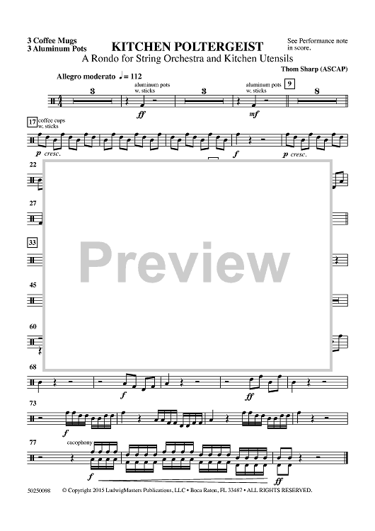 "Kitchen Poltergeist - A Rondo for String Orchestra and Kitchen Utensils - Coffee Mugs/Aluminum Pots" Sheet Music by Thom Sharp