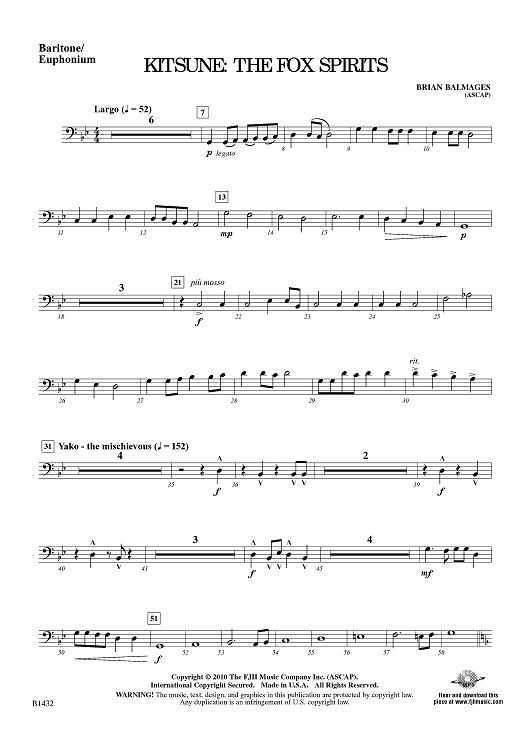 Digital Sheet Music for Kitsune: The Fox Spirits - Baritone/Euphonium by Brian Balmages scored for Young Band; id:415913