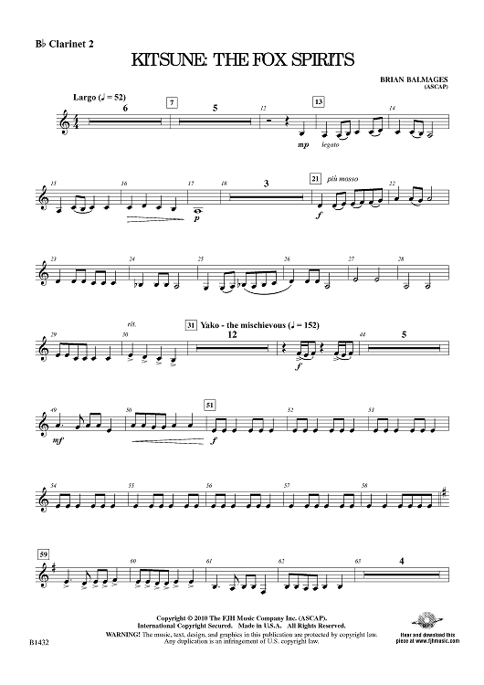 Digital Sheet Music for Kitsune: The Fox Spirits - Bb Clarinet 2 by Brian Balmages scored for Young Band; id:415902