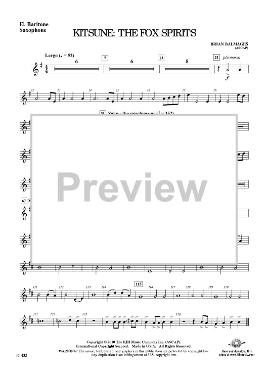 Digital Sheet Music for Kitsune: The Fox Spirits - Eb Baritone Sax by Brian Balmages scored for Young Band; id:415907