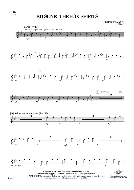 "Kitsune: The Fox Spirits - Guitar (Koto)" Sheet Music by Brian Balmages