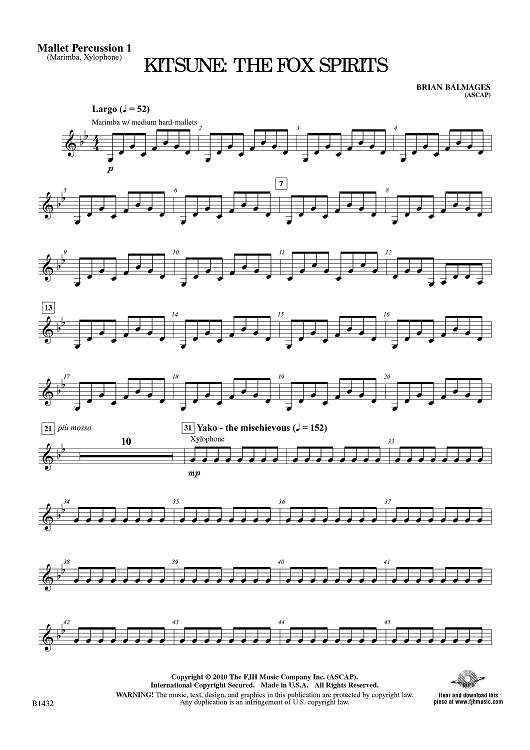 Digital Sheet Music for Kitsune: The Fox Spirits - Mallet Percussion 1 by Brian Balmages scored for Young Band; id:415916