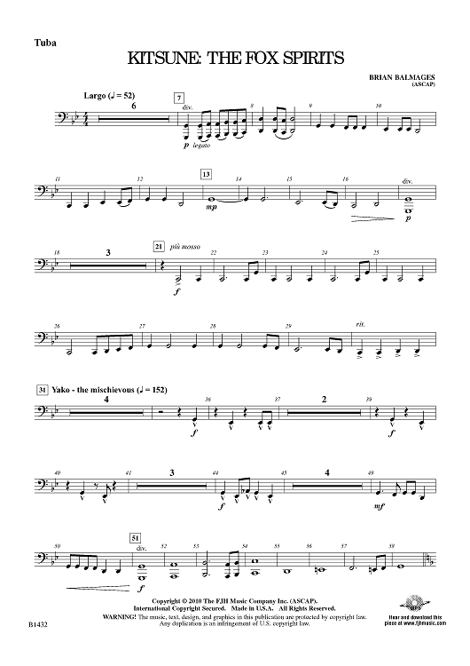 "Kitsune: The Fox Spirits - Tuba" Sheet Music by Brian Balmages