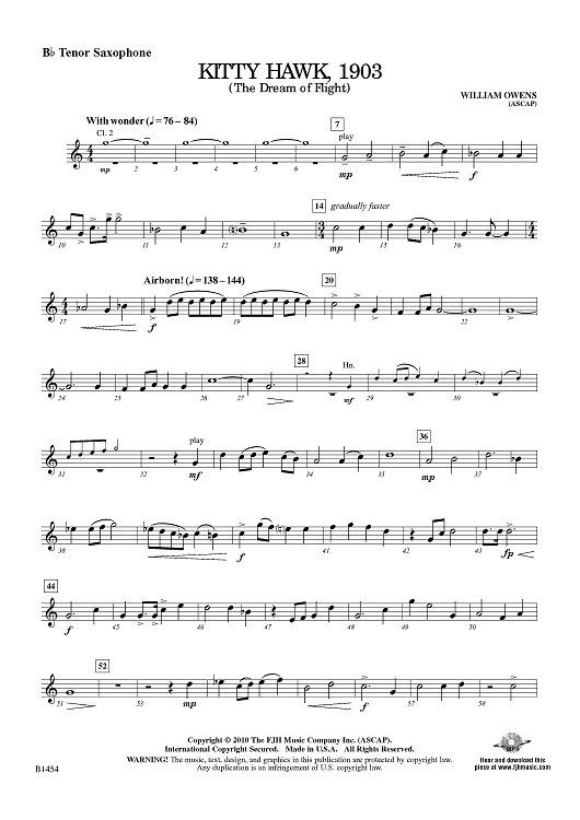 "Kitty Hawk, 1903 (The dream of Flight) - Bb Tenor Sax" Sheet Music by William Owens