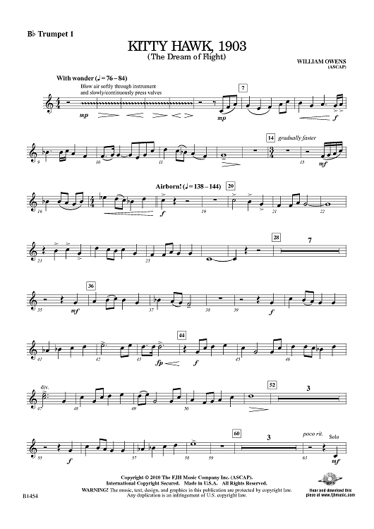 "Kitty Hawk, 1903 (The dream of Flight) - Bb Trumpet 1" Sheet Music by William Owens