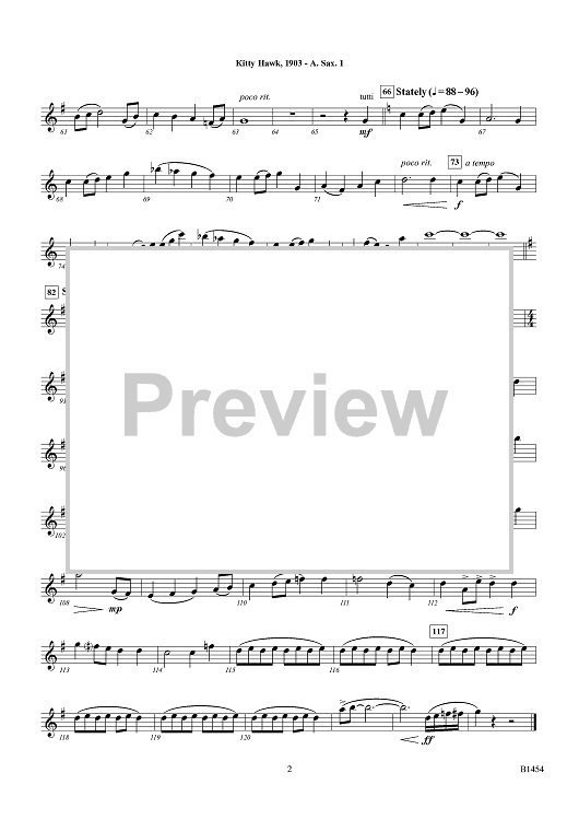 Digital Sheet Music for Kitty Hawk, 1903 (The dream of Flight) - Eb Alto Sax 1 by William Owens scored for Young Band; id:415491