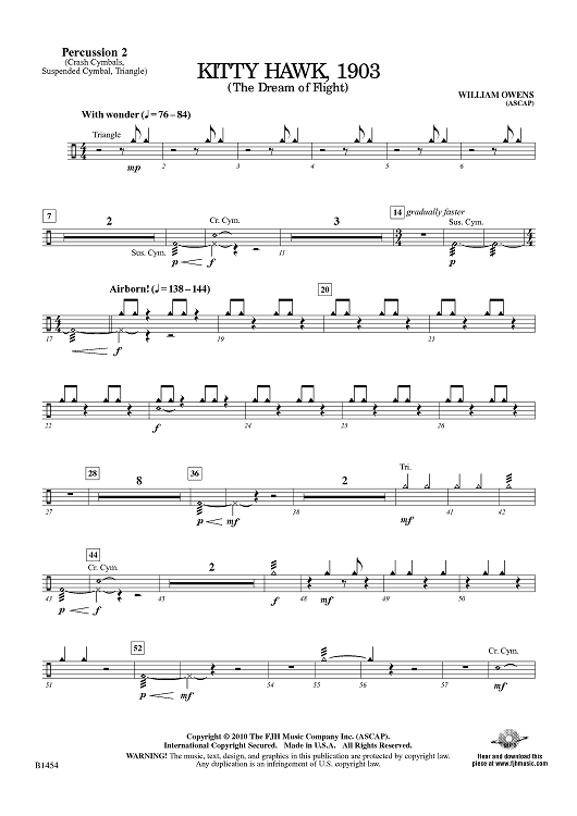 "Kitty Hawk, 1903 (The dream of Flight) - Percussion 2" Sheet Music by William Owens