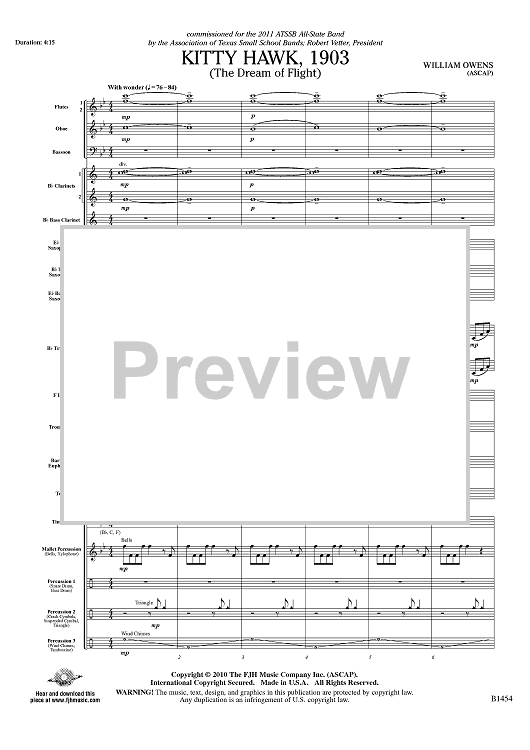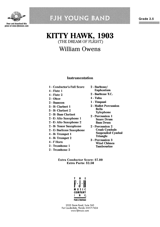 Digital Sheet Music for Kitty Hawk, 1903 (The dream of Flight) - Score by William Owens scored for Young Band; id:415483