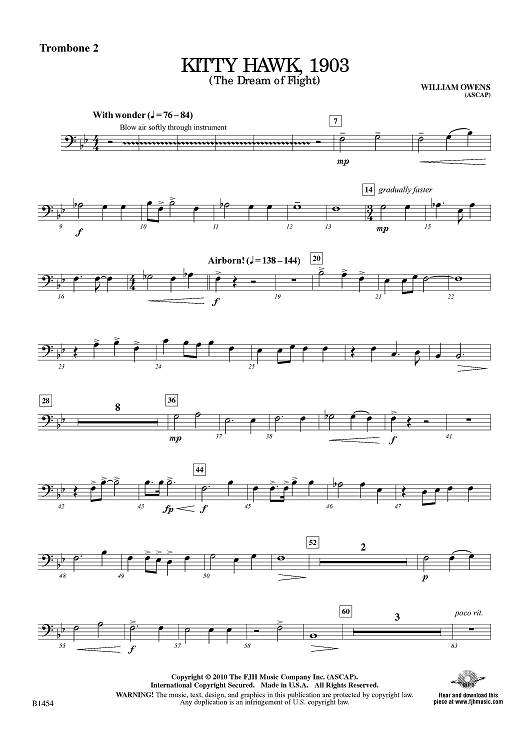 "Kitty Hawk, 1903 (The dream of Flight) - Trombone 2" Sheet Music by William Owens
