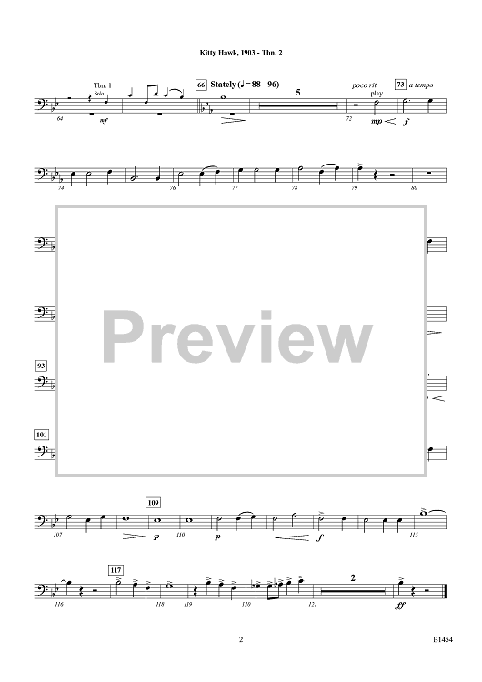 Digital Sheet Music for Kitty Hawk, 1903 (The dream of Flight) - Trombone 2 by William Owens scored for Young Band; id:415499