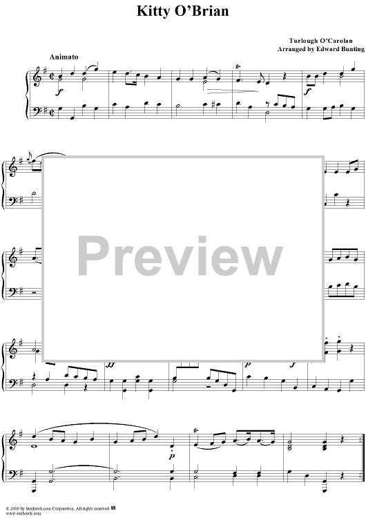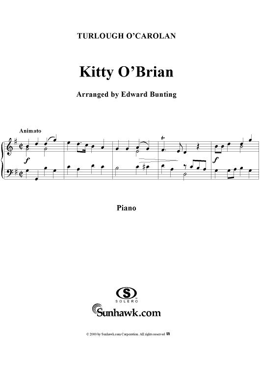 Digital Sheet Music for Kitty O'Brian by , Turlough O'Carolan, Edward Bunting scored for Piano Solo; id:173706