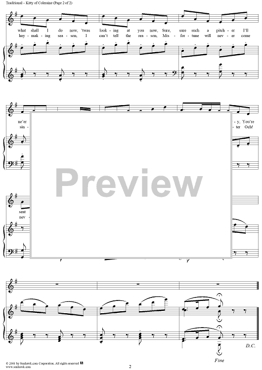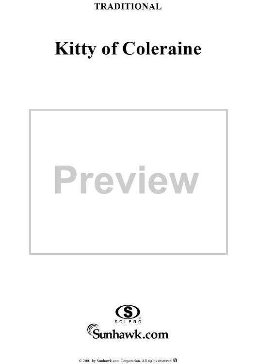 Digital Sheet Music for Kitty of Coleraine by Traditional scored for Piano/Vocal; id:258643