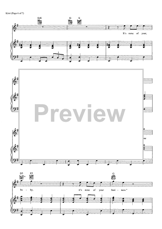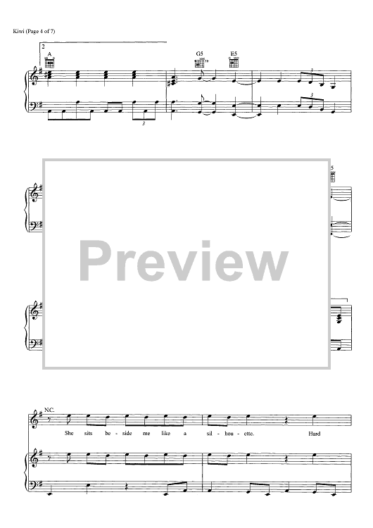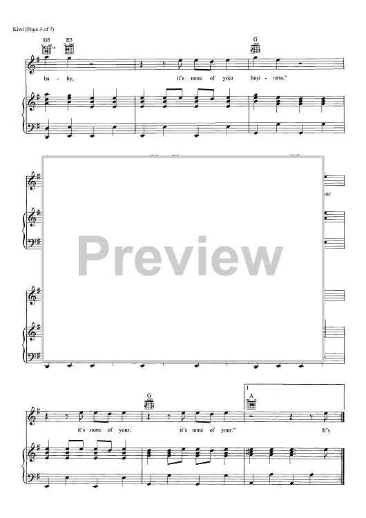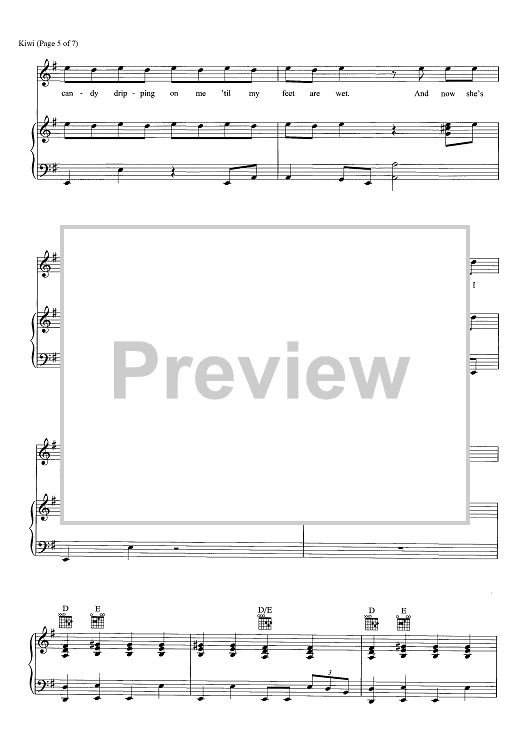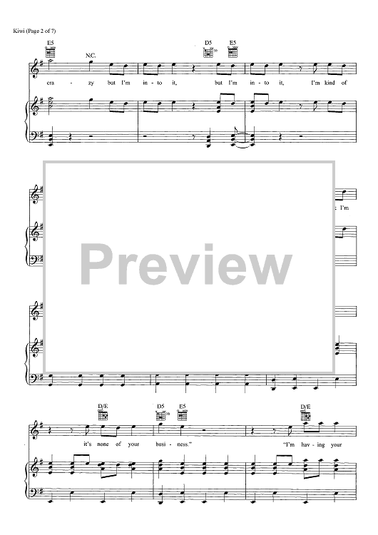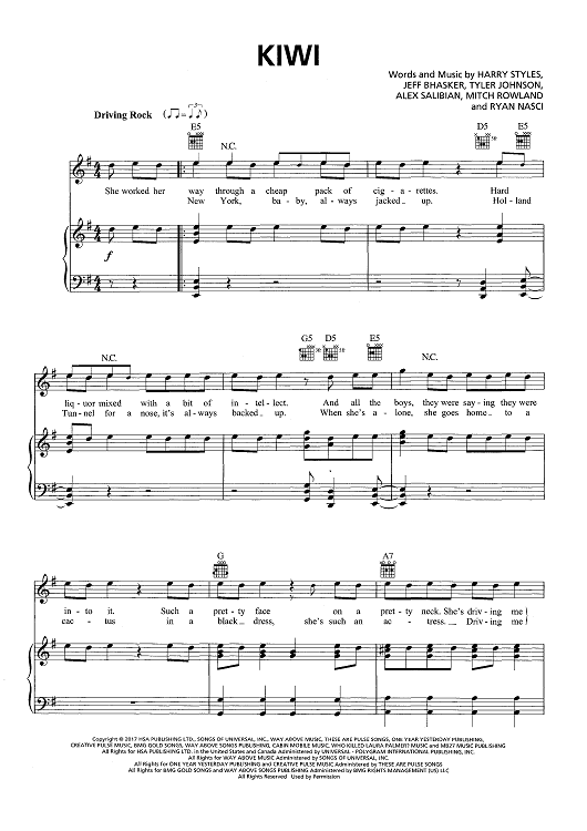 Digital Sheet Music for Kiwi by Jeffrey Bhasker, Harry Styles, Tyler Johnson, Alex Salibian, Ryan Nasci, Mitch Rowland scored for Piano/Vocal/Chords; id:466145