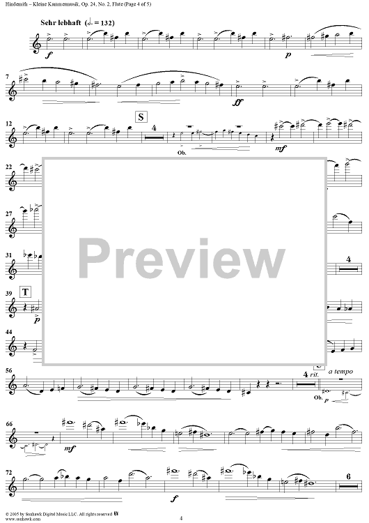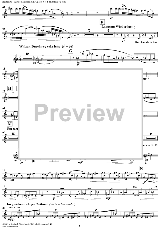 "Kleine Kammermusik für fünf Bläser - Flute" Sheet Music by Paul Hindemith